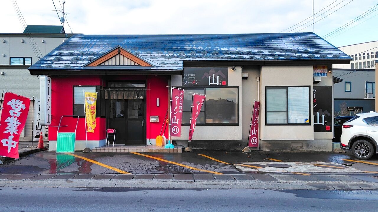 今回のお店は「ラーメン山」です。 内観や駐車場など お店の前に灰皿が置いてあります。店内はカウンター席とテーブル席と座敷があって禁煙。カウ···
